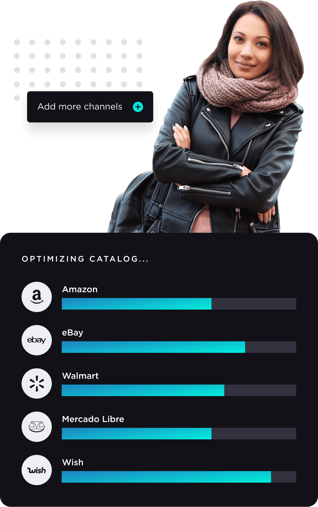 Marketing across three or more channels earns 250% higher engagement. Use best-in-class tools like Feedonomics and Codisto to sell, advertise and grow across digital marketplaces, social commerce and search engines. Plus, leverage Feedonomics’ FeedAi™ and FeedDNA™ to automatically categorize products and boost channel performance.