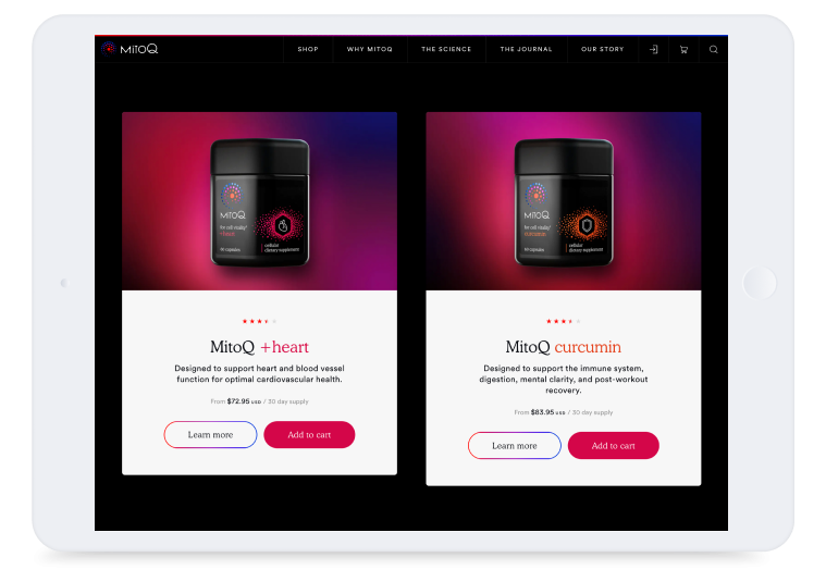 Although the Ecwid platform allowed for a website that was secure and functional, it did not offer MitoQ’s customers the optimal experience. “We were losing customers through the funnel because the experience was a bit bumpy along the way with inconsistencies,” said Price. “We knew we needed to fix it, which is one of the reasons we decided to make the move towards headless ecommerce.”