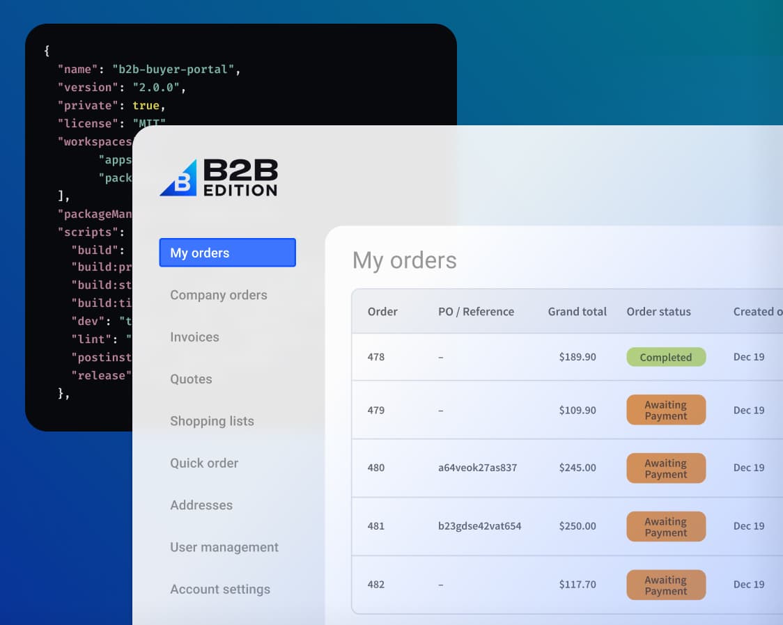 The open-source buyer portal allows your customers to easily manage their account and place new orders. Customise the experience to fit your exact needs.
