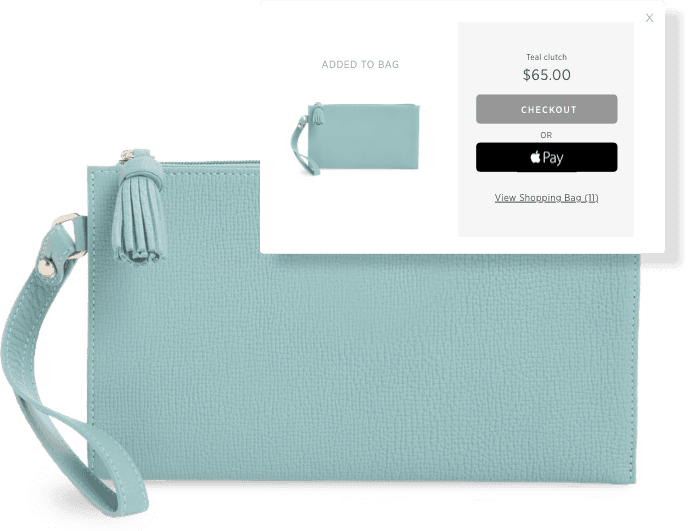 Get to your first sale faster by instantly accepting major credit cards, PayPal, and Apple Pay in a single click.
