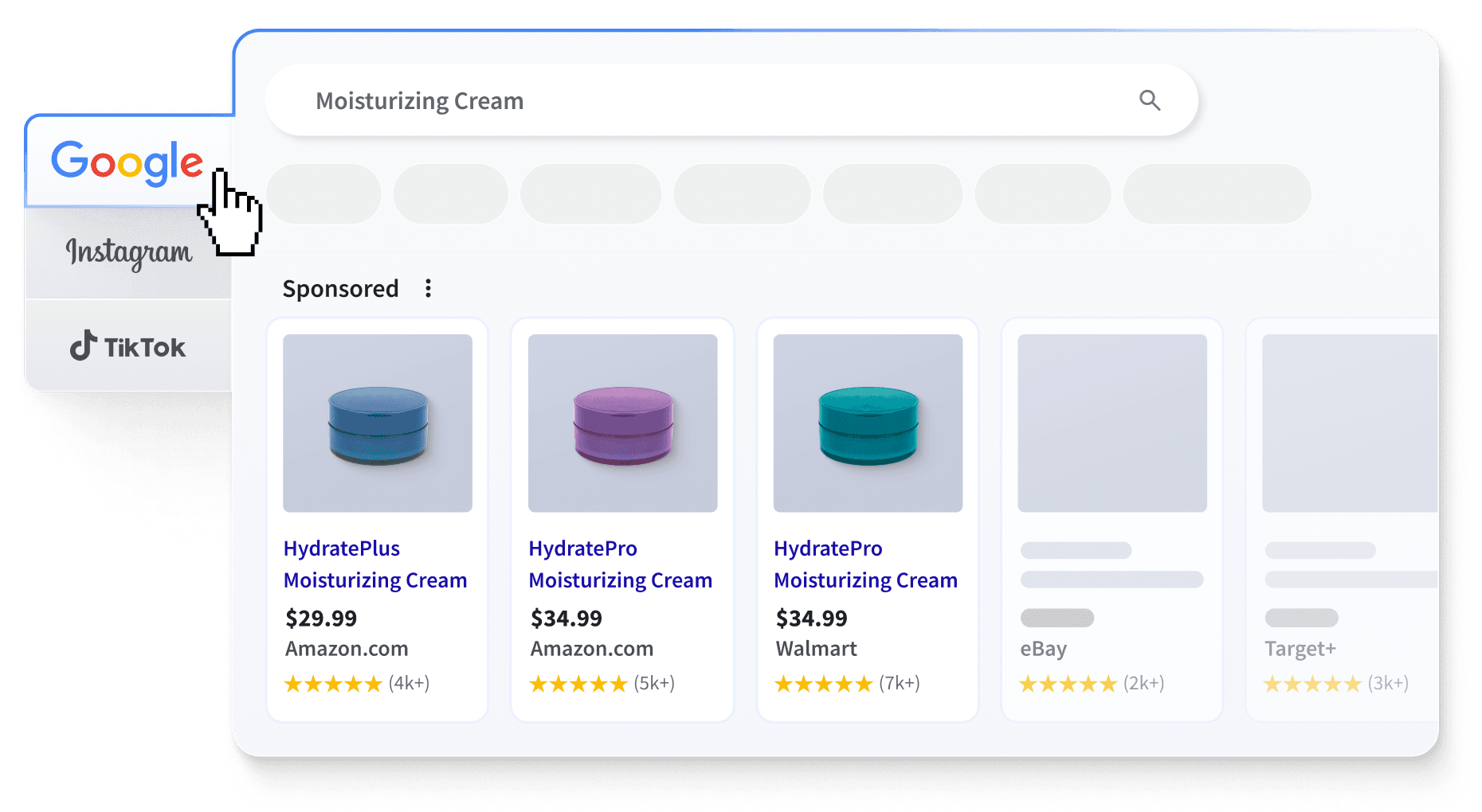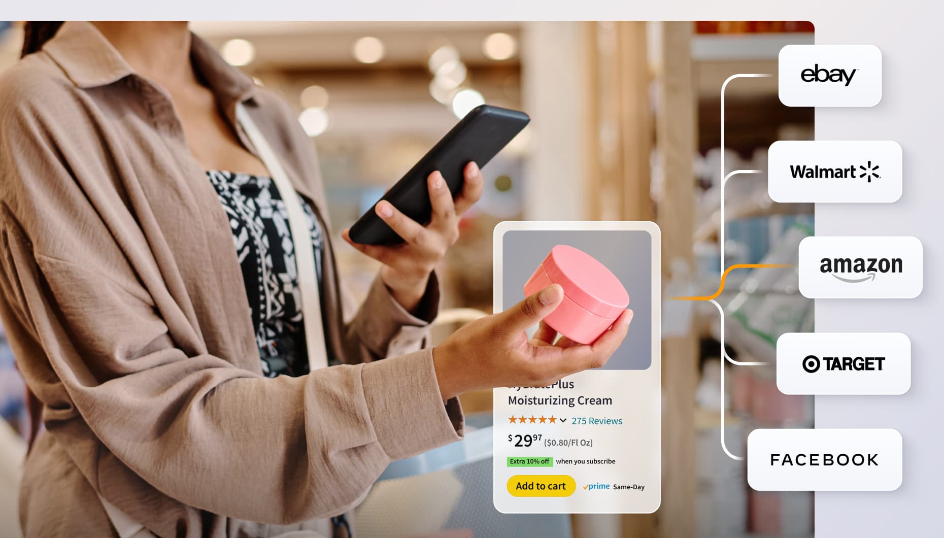 Reach more shoppers across leading marketplace, social, search, and advertising channels.