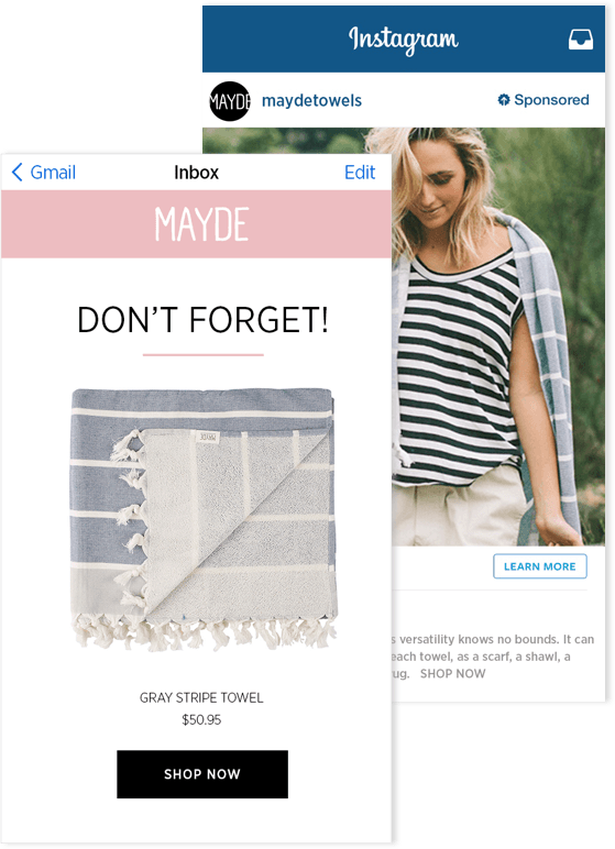 Use abandoned cart data to build remarketing campaigns for email, banner and social media ads, and more.