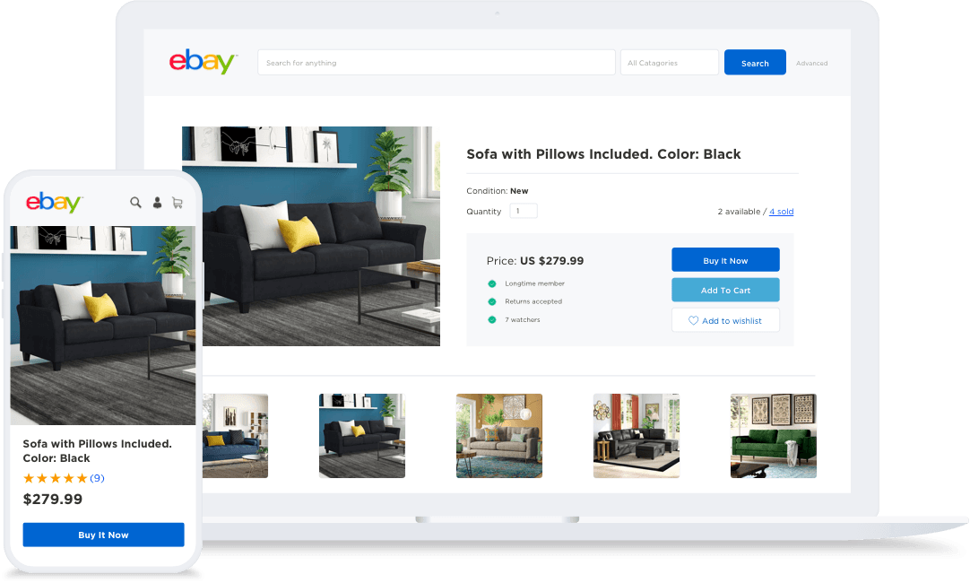 Our native integration enables you to sell direcly to eBay's massive customer base, directly from your BigCommerce control panel.