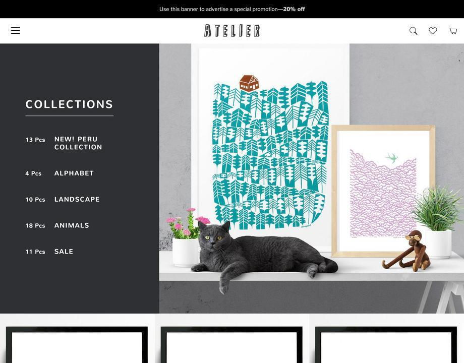 Atelier is truly one of a kind. Its cutting-edge design and high-class editorial feel are like no other theme on the market. Guaranteed to make your business stand out online, Atelier puts a premium on stunning, full-width imagery, with a unique navigation menu and gorgeous homepage product grid. It's the definition of style.