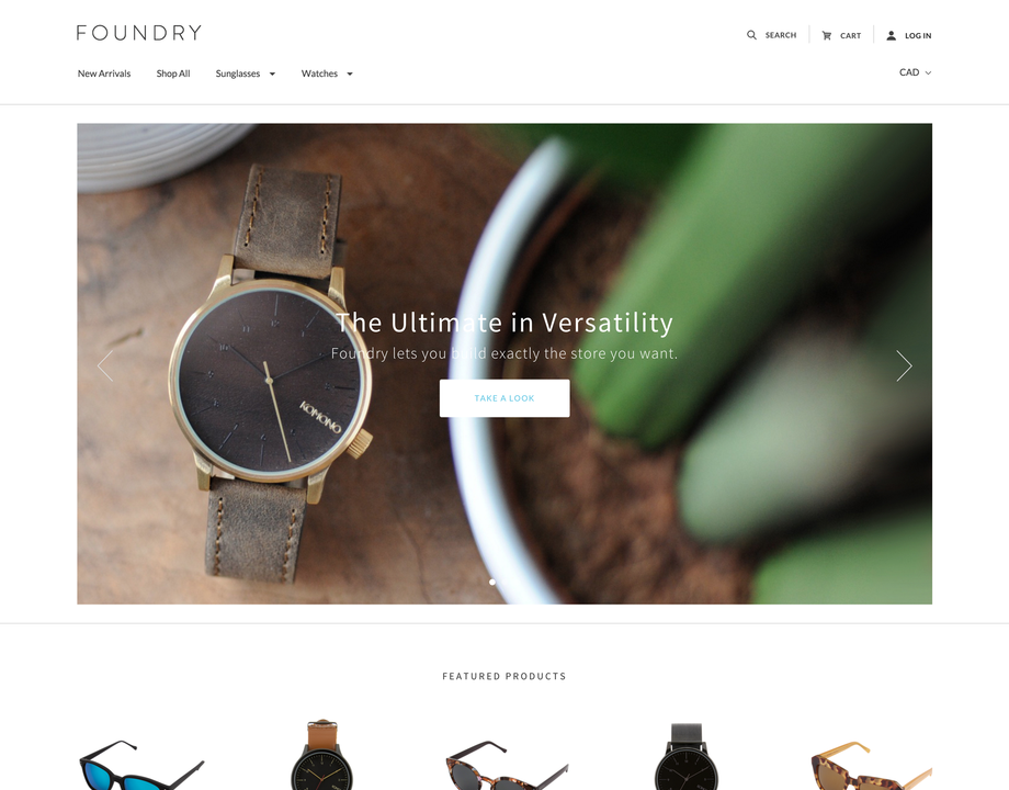 Foundry lets you build exactly the store you want. The definition of versatility, Foundry's minimal, grid-based design is quick to set up and easily adapts to showcase your products and brand. Accessible to shoppers across a range of industries, Foundry is the perfect theme to get your store up and running—and converting—today.