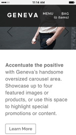 Geneva is a striking and contemporary theme designed to showcase top-shelf products and curated boutique collections. With its editorial look and feel, long scroll feature, and focus on large, high-resolution images, Geneva lets your products tell your brand's story in arresting detail.