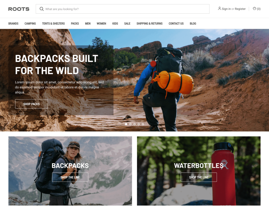 Roots's emphasis on search, and versatile navigation system makes it ideal for medium to large sized product catalogs. With a clean usable design, it can adapt to a wide variety of business types and instantly make your online store professional. Some highlights are the sticky header that reduces in size as a user scrolls, the robust product grid that adapts to a variety of image proportions, and easy to use filter display on mobile.